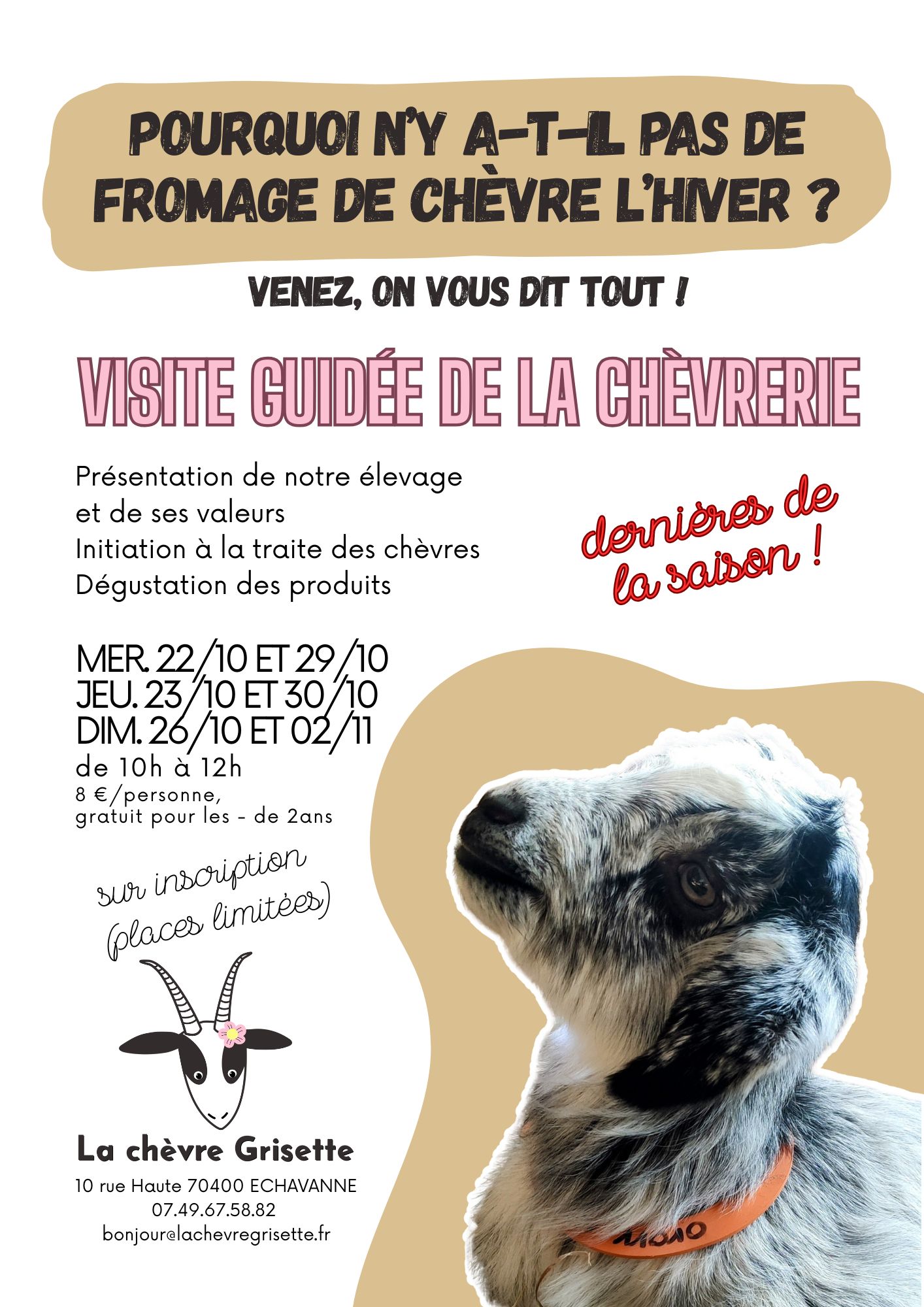 Visite guidée de la chèvrerie "La Chèvre Grisette" à Échavanne. Pourquoi n'y a t-il pas de fromage de chèvre l'hiver?
